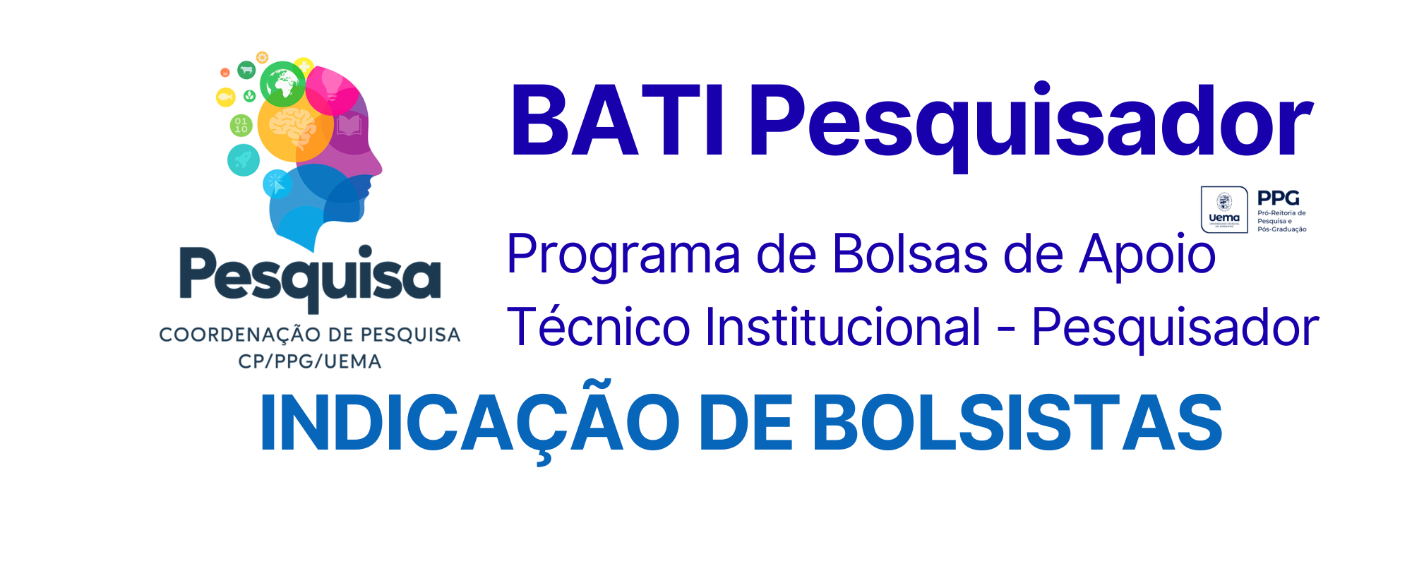 A Bolsa de Apoio Técnico Institucional – BATI tem por finalidade prover suporte técnico à execução de atividades de pesquisa, sejam elas de caráter científico, tecnológico ou de inovação, relevantes para a Universidade Estadual do Maranhão – UEMA.